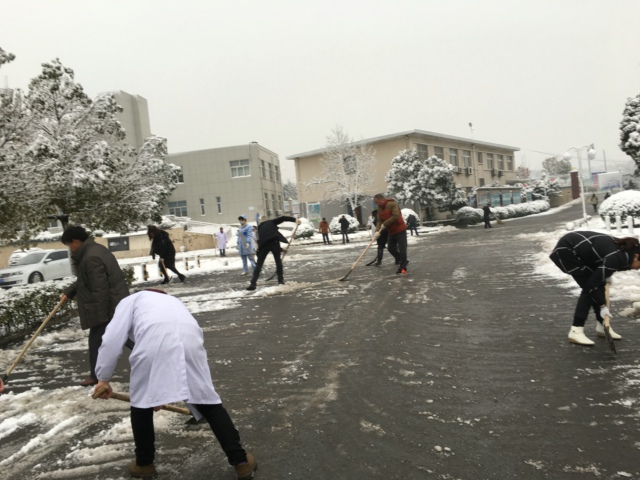 為預防雪后路面結冰濕滑引起跌摔,保證來院就診病人和醫(yī)院工作人員安全,2月1日早上一上班,市三院職工在趙宜生院長帶領下扛起鐵鍬、拿起掃把,奔赴院內(nèi)積雪“前線”,清除醫(yī)院道路上的積雪。大伙持續(xù)鏟雪近一個半小時,終于掃出了一條保衛(wèi)病患安全的“康莊大道”!