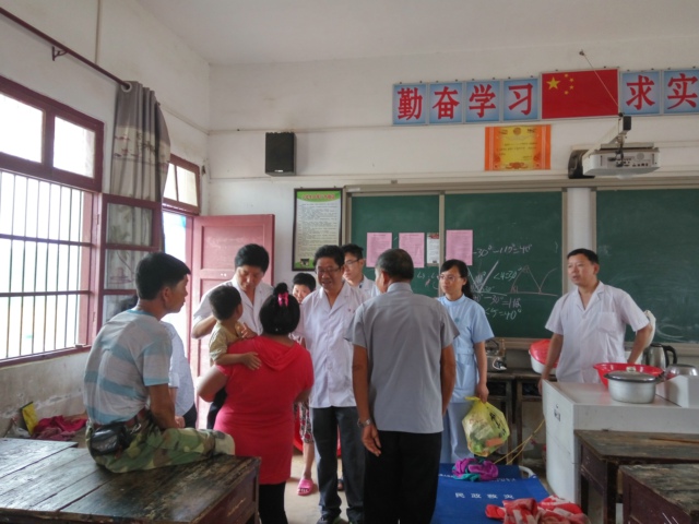 隨著新一輪降雨的到來,銅陵地區(qū)嚴(yán)峻的抗洪形勢依舊在持續(xù)。銅陵市第三人民醫(yī)院抗洪心理干預(yù)分隊(duì)一直奔波在災(zāi)后安置點(diǎn),為受災(zāi)群眾及防汛抗洪人員進(jìn)行心理疏導(dǎo),以防他們在長期處于高度應(yīng)急狀態(tài)下出現(xiàn)各種心理問題。2016年7月14日,銅陵市第三人民醫(yī)院院長趙宜生帶領(lǐng)抗洪心理干預(yù)分隊(duì)冒雨來到樅陽地區(qū)受災(zāi)安置點(diǎn),進(jìn)行巡診。