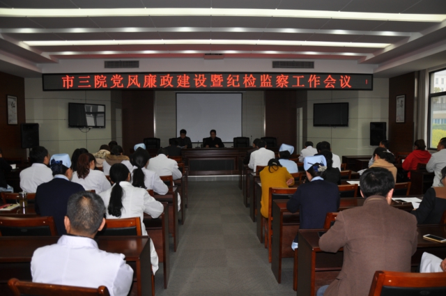 2017年3月20日下午,市三院在醫(yī)院綜合樓會(huì)議室召開2017年黨風(fēng)廉政建設(shè)暨紀(jì)檢監(jiān)察工作會(huì)議。醫(yī)院全體黨員及中層以上干部參加了會(huì)議。