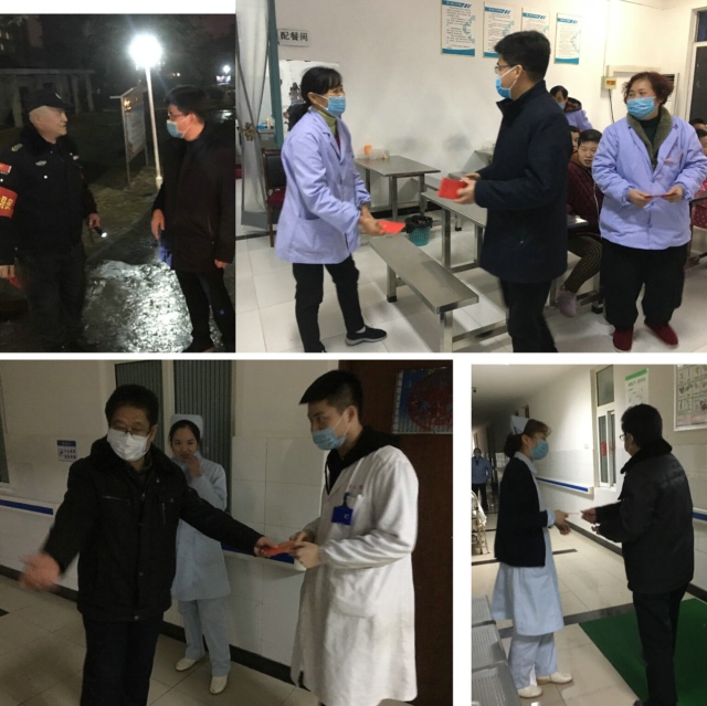 三是加強(qiáng)監(jiān)督檢查。每天檢查巡查病房、門診值班情況,確保人員值守,保證醫(yī)院有效運(yùn)轉(zhuǎn)。1月24日,是中國(guó)傳統(tǒng)的除夕之夜,分管紀(jì)檢工作的方堃副書(shū)記親臨各病區(qū)、各部門向春節(jié)堅(jiān)守在一線崗位的職工致以節(jié)日的祝福和問(wèn)候,同時(shí)親切叮囑職工文明過(guò)年:減少集體活動(dòng),通過(guò)電話、短信、微信拜年,盡量減少集體活動(dòng),勤洗手、戴口罩,共同打好防疫攻堅(jiān)戰(zhàn)。1月25日、1月26日,副書(shū)記方堃?guī)ш?duì)到三個(gè)社區(qū)衛(wèi)生服務(wù)中心和醫(yī)院門診檢查督導(dǎo),查看預(yù)檢分診、發(fā)熱門診設(shè)置開(kāi)展情況,防護(hù)醫(yī)療物資儲(chǔ)備、調(diào)配情況,嚴(yán)禁疫情防治工作中出現(xiàn)推諉扯皮等形式主義、官僚主義問(wèn)題,以嚴(yán)明的紀(jì)律確保打贏這場(chǎng)疫情防控戰(zhàn)。