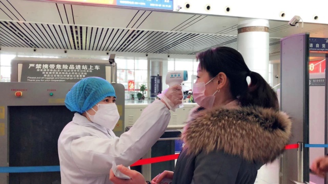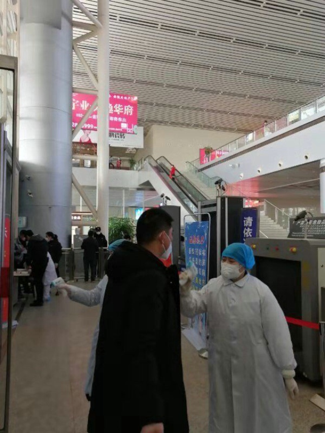 圖為銅陵站,我院鷂山社區(qū)工作人員為返銅人員檢測(cè)體溫,詢問(wèn)有無(wú)武漢接觸史,為返銅人員宣傳新型肺炎疫情防控知識(shí)。