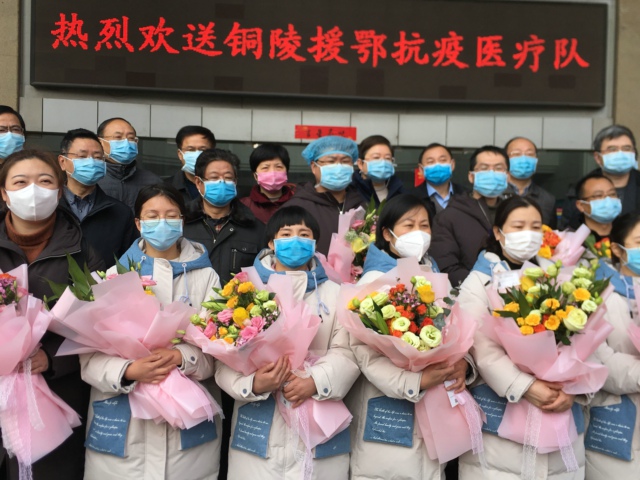 圖為銅陵第三批援鄂醫(yī)療隊(duì)伍,前排左三為孫蕾蕾